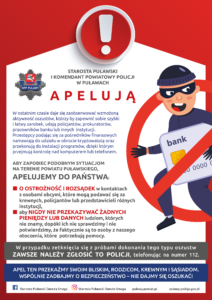 O istnieniu poważnych zagrożeń w zakresie bezpieczeństwa finansowego świadczą statystyki przestępczości. Tylko w ubiegłym roku na terenie powiatu puławskiego odnotowano 45 przestępstw metodami na wnuczka, policjanta, prokuratora, pracownika banku itd. oraz oszustw internetowych. W roku 2020 wystąpiło 108 przestępstw tego typu, a w 2019 – 137. Istotnym zagrożeniem bezpieczeństwa są również utonięcia, 5 w 2019 roku i 3 w ubiegłym.